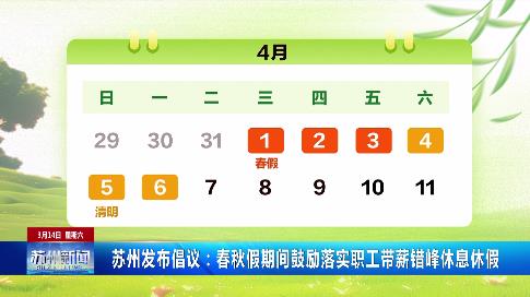 蘇州發(fā)布倡議:春秋假期間鼓勵(lì)企業(yè)落實(shí)職工帶薪錯(cuò)峰休假